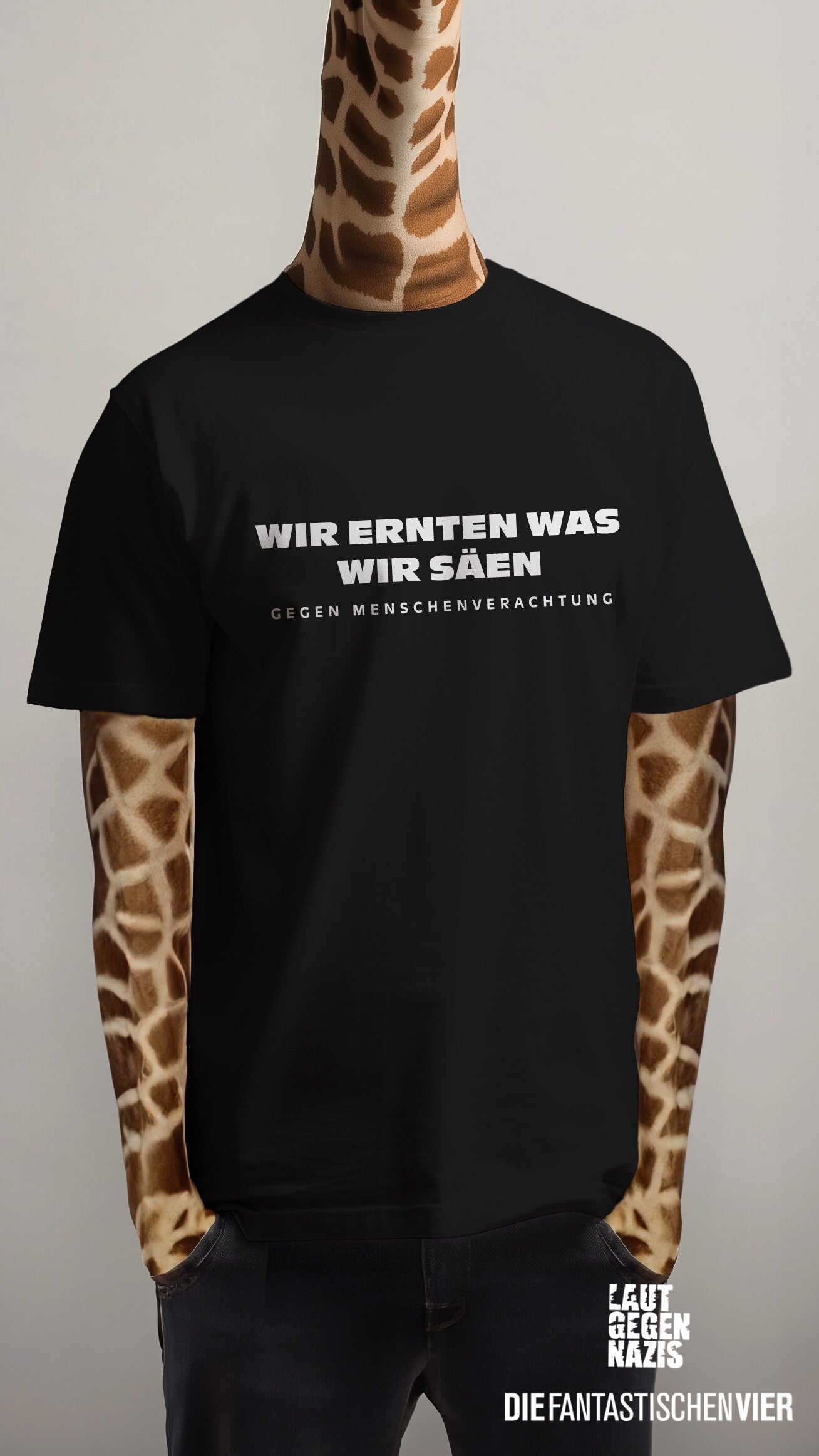 Wir ernten-was wir säen - gegen Menschenverachtung!-wechselt den Shop. Abjetzt ist dieses Motiv bei uns erhältlich. Das Shirt enthält Spenden für den Verein Laut gegen Nazis e.V. in Hamburg.